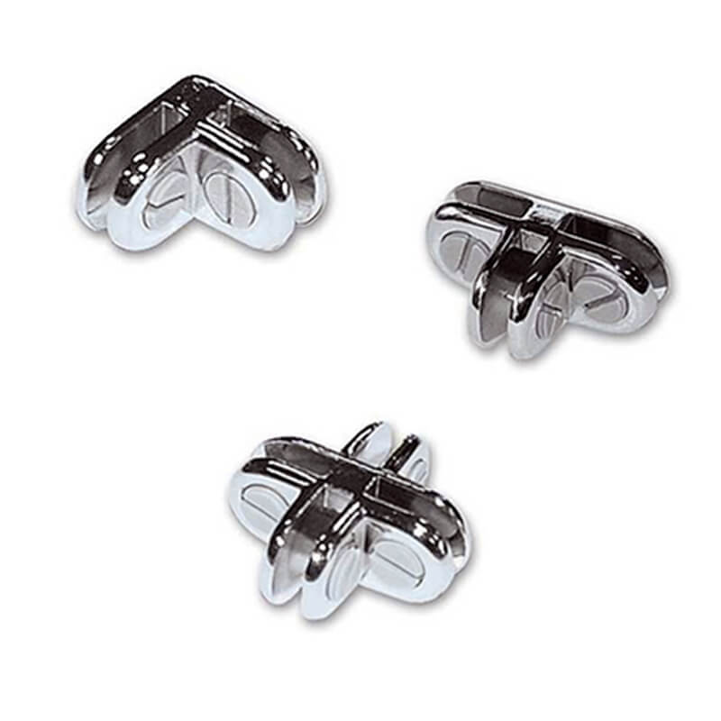 Available in three different joining ways, 2-way, 3-way and 4-way and finished in bright chrome and complete with slotted screws.