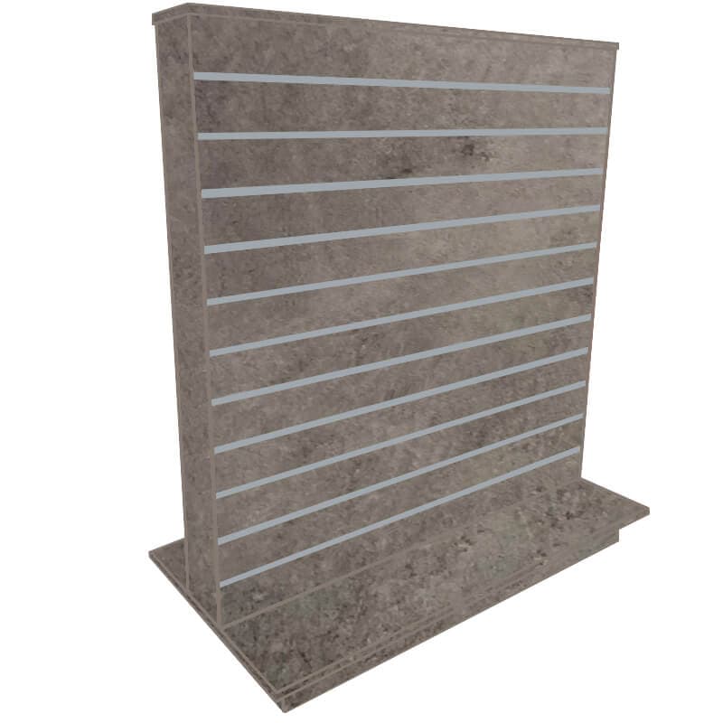 This space-saving Slimline Slatwall Gondola Island Retail Display stand looks stunning in a Concrete finish and makes a dramatic statement in any retail environment.