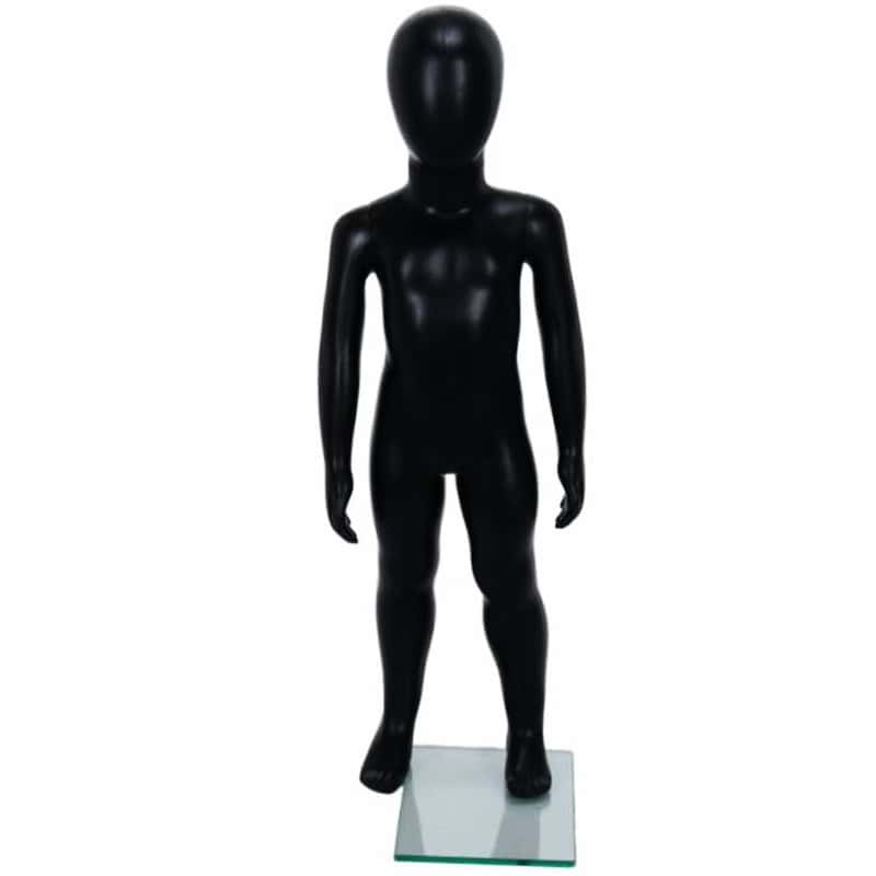 This unisex child mannequin boasts a sleek and modern black egg head design, adding a contemporary touch to your retail environment. The smooth and streamlined silhouette of the egg head enhances the overall aesthetic appeal of the mannequin, making it a perfect fit for a variety of retail settings, from boutiques to department stores.