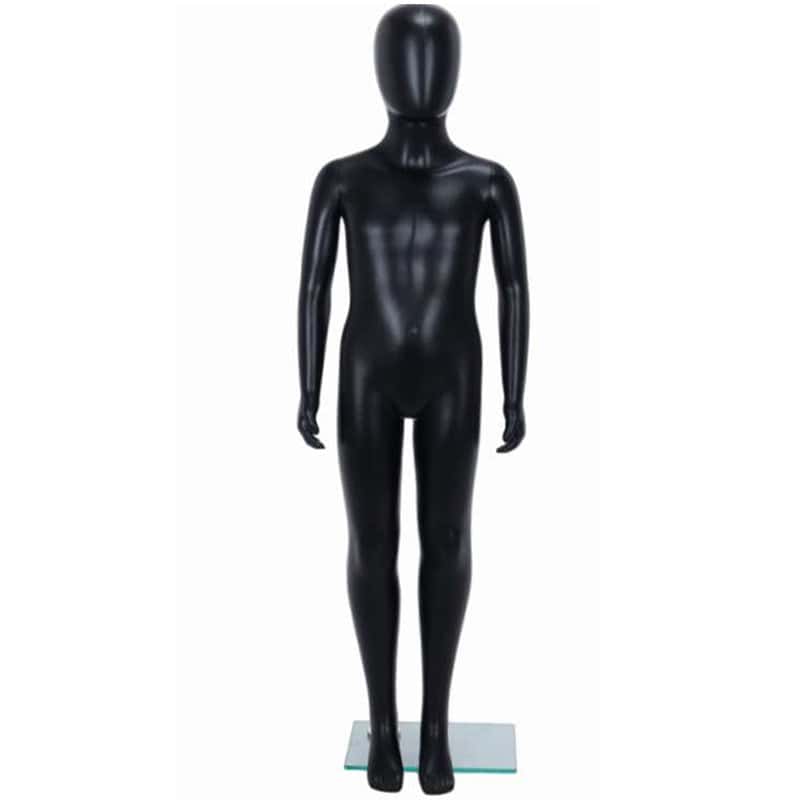 This unisex child mannequin boasts a sleek and modern black egg head design, adding a contemporary touch to your retail environment. The smooth and streamlined silhouette of the egg head enhances the overall aesthetic appeal of the mannequin, making it a perfect fit for a variety of retail settings, from boutiques to department stores.