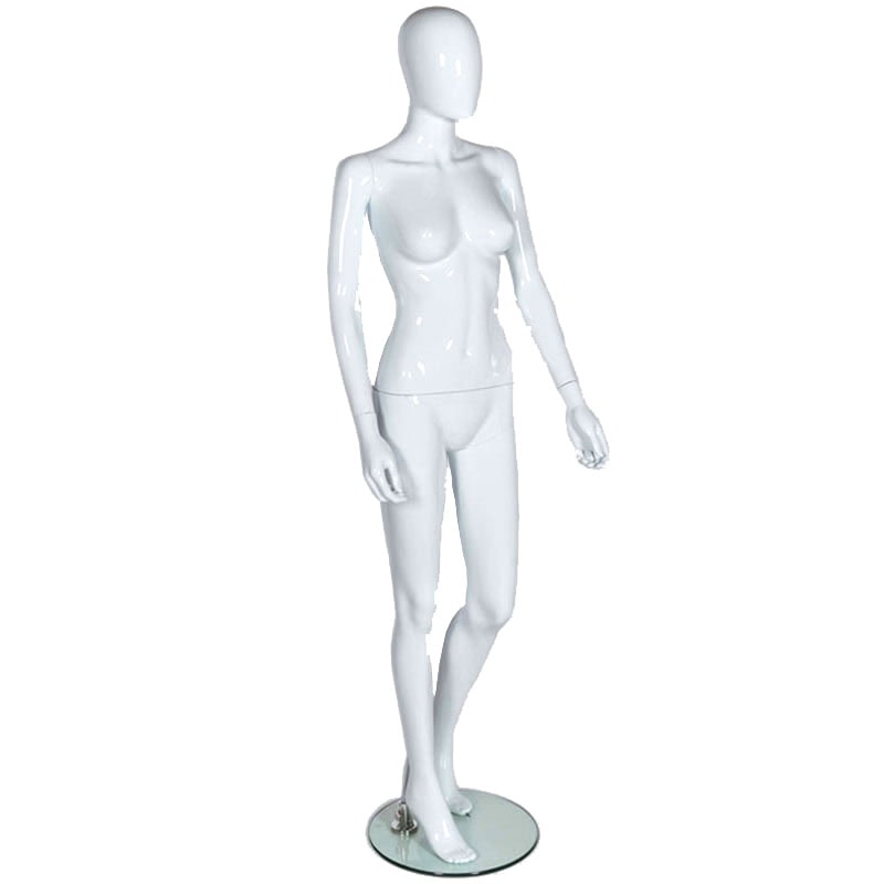 Our lady retail mannequin has adjustable head and arms and comes with a stabilising 38cm glass base. Egg head, or featureless mannequins, are very popular and really make clothing displays stand out.