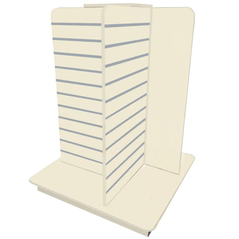 Promote your products with this space-saving 4 Way Slatwall Gondola Island Retail Display. Available in a wide range of finishes, it has so many uses and is so versatile with so many available Slatwall Accessories including garment rails, posts, rails, baskets and shelves, these displays are great for any products.