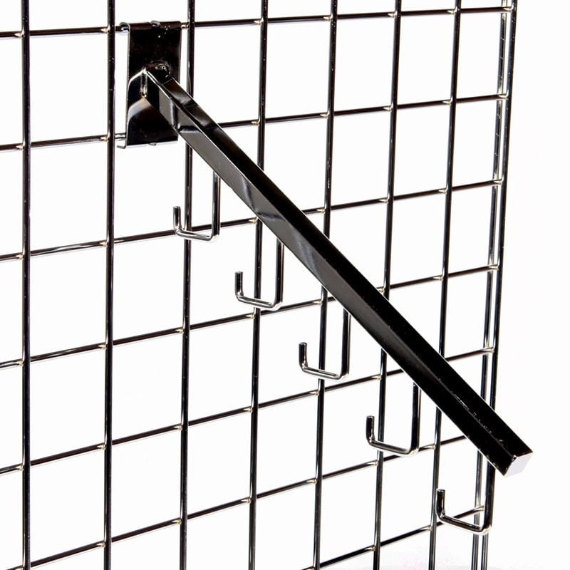 With a strong pre-fitted large backplate and downward sloping arms, these Gridwall 5 Hook Waterfall Arms are a retail favourite.