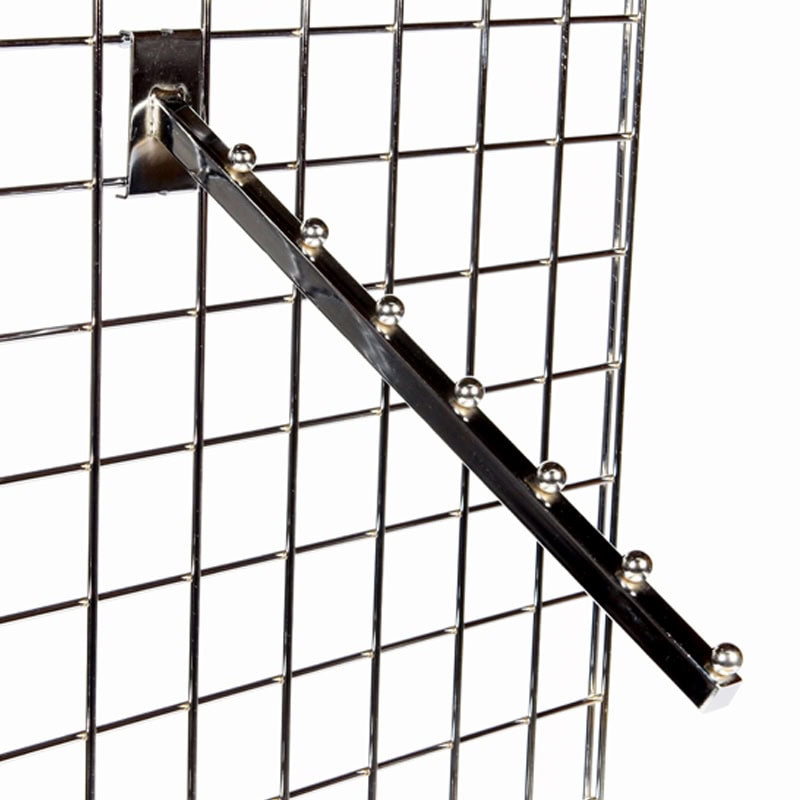 Our range of chrome plated Gridwall 7 Ball Waterfall Arms, are manufactured with 7 ball bearing style stops, fixed to the top side of a 18mm square tube.