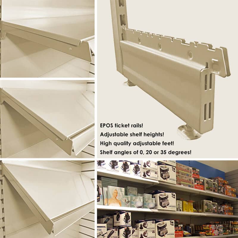 This starter bay comes with 1 x 665mm wide x 370mm deep base shelf. To order more shelves, simply contact us. We will include the extra Shelf Brackets & EPOS Ticket Rails. We recommend 5 shelves, but you could add more.