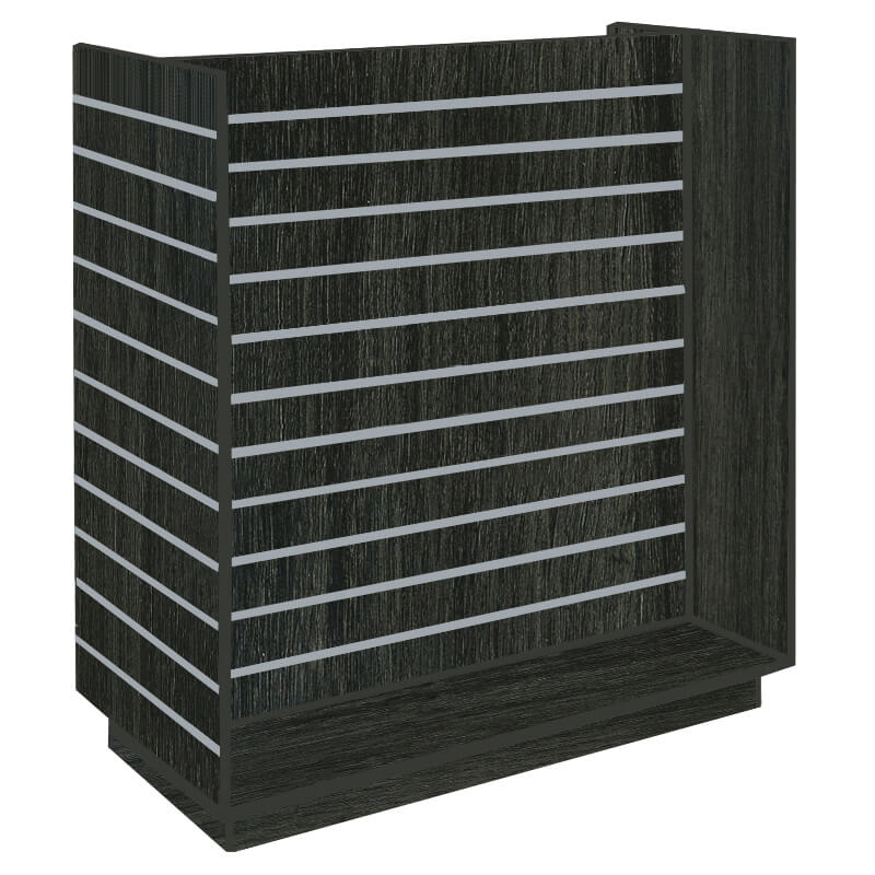 Attractive H-Shaped Slatwall Gondola Retail Display Unit in a Jet Oak finish, customisable with Slatwall accessories.