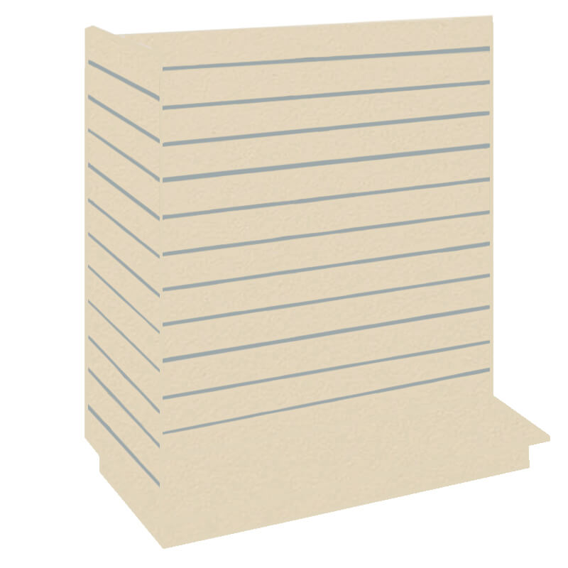 T-Shaped Slatwall Gondola Retail Display Unit in a Cream finish, fully customisable with Slatwall accessories.